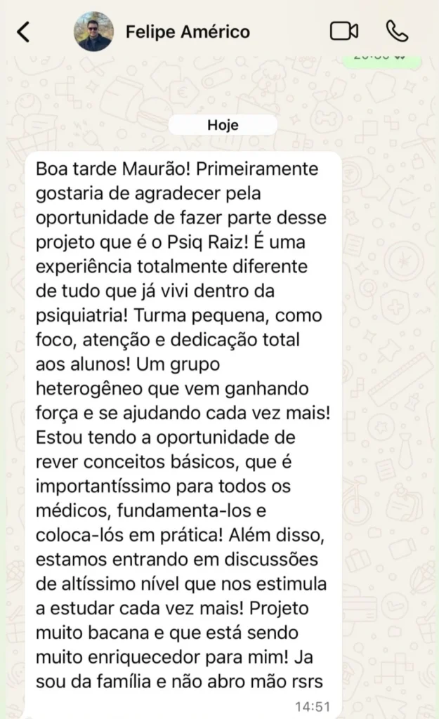 Na Mentoria PSIQ RAIZ, em 3 a 4 meses, o médico já se sente clinicamente preparado para conduzir casos reais.